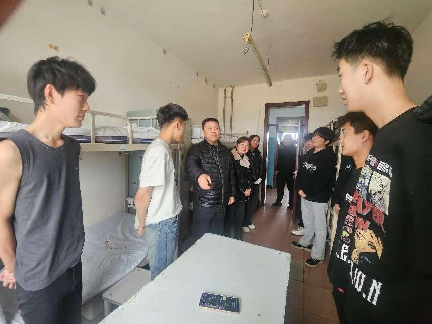 为深入贯彻立德树人根本任务,践行"以学生为中心"的教育理念,2025年3月25日上午,副校长于沛君带领学生工作部、保卫处等相关职能部门负责人深入学生寝室走访慰问,与同学们面对面交流学生的思想生活状况,强化安全教育管理。