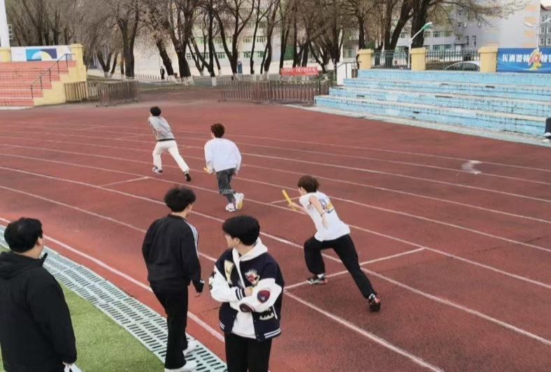 传统田径项目男子四百接力和女子四百接力则将赛事推向高潮。跑道上,选手们如离弦之箭全力冲刺,接力棒的每一次传递都凝聚着团队的信任与期待。场边驻足观看的同学呐喊声此起彼伏,为参赛同学注入无限动力。在群树的环绕中,那渺小的身影却带出一阵阵劲风,这一阵阵劲风是参赛者迸发蓬勃生命力的象征。女子四百接力中药管2402王英仪、药安2402李晓璐,药安2401刘新月、裴鑫淼都以1.16.09s的成绩成为并列第一。正所谓“无巧不成书”,也正是这样的“巧”才形成了这样的“一”。