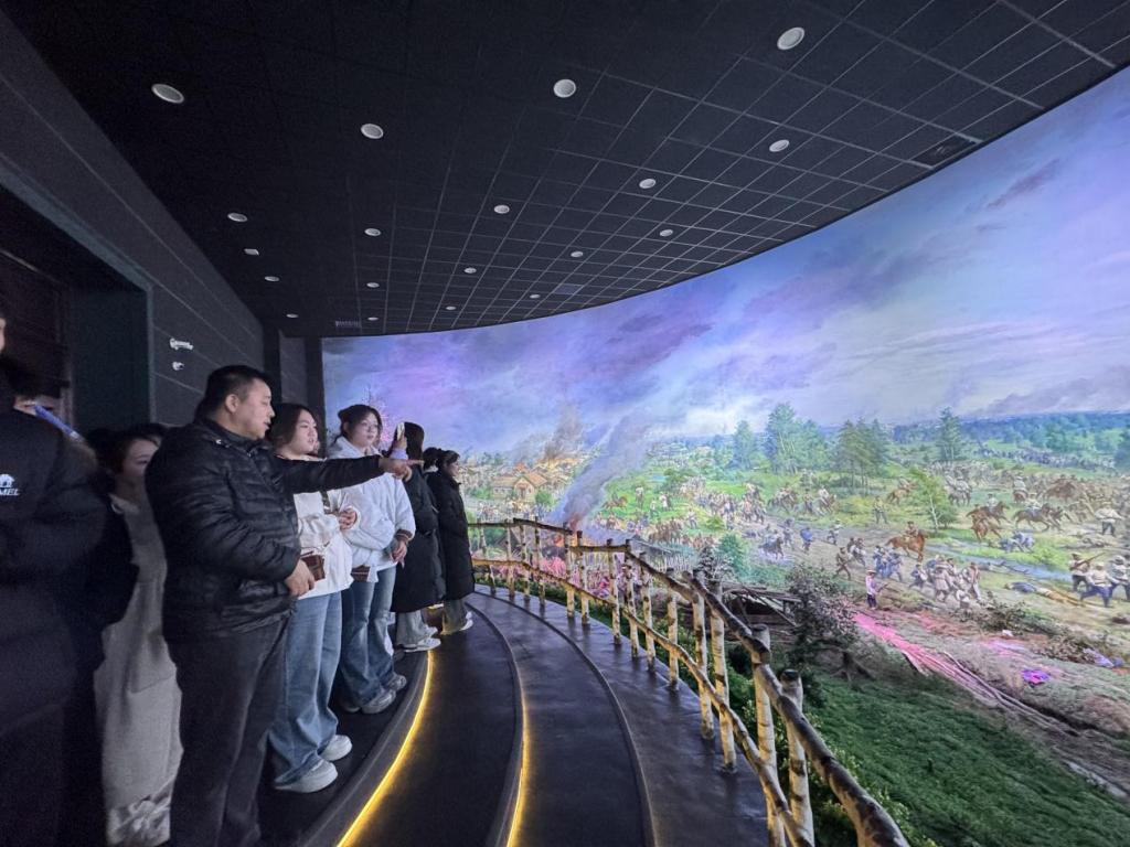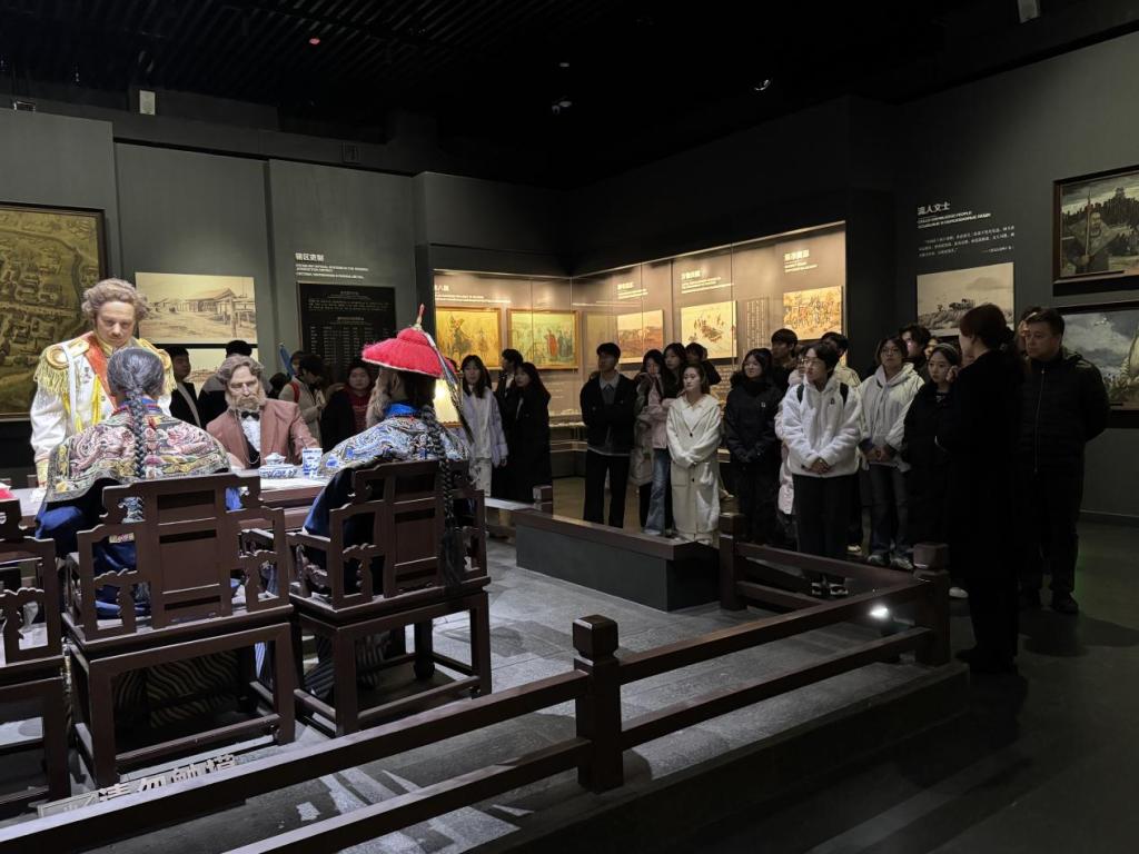 上午9时,参与活动的师生首先抵达瑷珲历史陈列馆。作为全国重点文物保护单位、全国爱国主义教育示范基地,瑷珲历史陈列馆系统展示了从远古时期到近现代的黑河地区历史。在讲解员的引导下,大家依次参观了“黑龙江的记忆”“瑷珲的历史”“屈辱的条约”“浴血的抗争”等展区,通过珍贵的历史文物、详实的文献资料、生动的场景复原,全面了解了瑷珲古城在清代的繁荣景象、《瑷珲条约》的签订背景及其对中国领土主权的严重损害。当看到抗日民族英雄事迹展区时,师生们纷纷驻足凝视,结合医学专业视角,深刻感悟英雄们“舍生取义”的精神与医学行业“救死扶伤”使命的共通之处,从而进一步坚定了以专业能力服务社会、守护人民健康的职业初心。