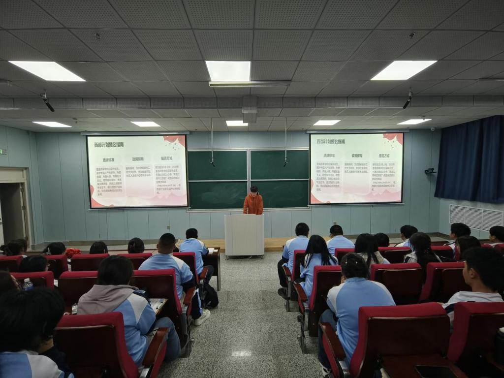 校团委负责人孙健飞细致解读了西部计划的招募条件、服务内容、保障措施等相关政策,表示西部计划不仅是国家的一项重要战略举措,更是青年学子实现自我价值、锤炼品德意志的广阔舞台。