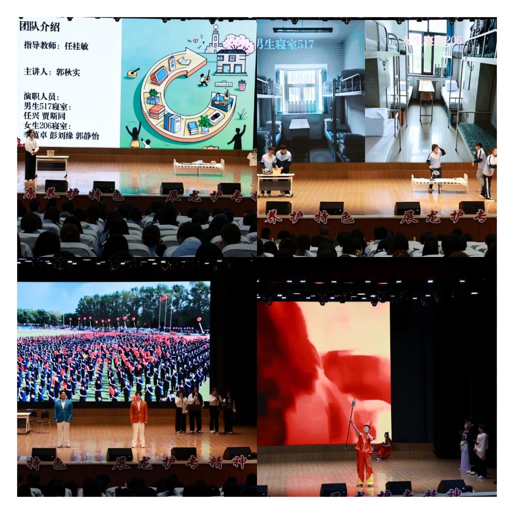 在成果展示环节,六大系部精心筹备的8个作品依次亮相,全方位呈现了各系在寝室标准化管理工作中的创新思路与实践成果。护理系带来的《一拍伸缩,羽乐无限》,展现了运动的激情与活力;临床医学系的《医寝风华:方寸间的岐黄青春》,将专业特色与寝室文化巧妙融合;药学系的《百草经纬 药香九州》,让千年药香与文化创意产生奇妙共鸣。