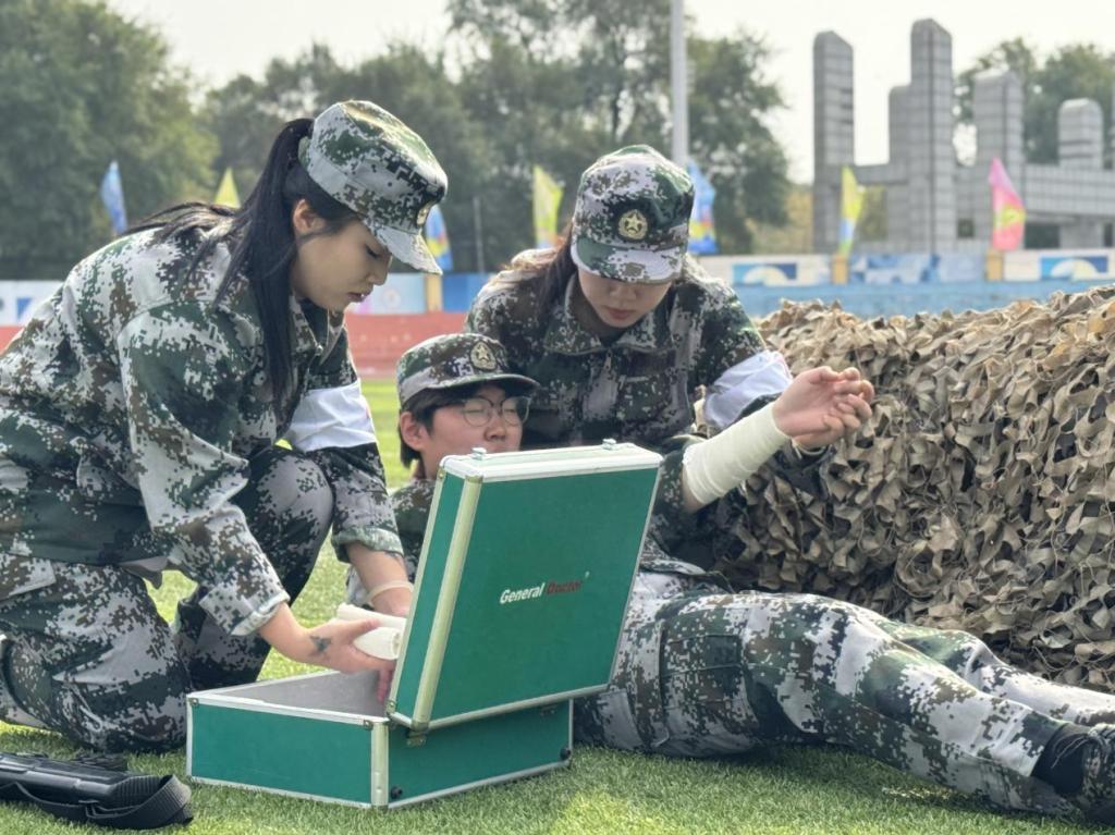在军训成果展示环节,2025级新生以连队为单位,身着迷彩服,动作整齐划一,口号响彻云霄。作为医学院校,学校将专业特色融入军事训练,在汇报中展现了应急救护演练等科目,担架转运、伤口包扎等动作娴熟规范,实现了军事素养与专业技能的双重提升,充分体现了“龙护专学子敢担当、能吃苦、懂协作”的精神风貌。