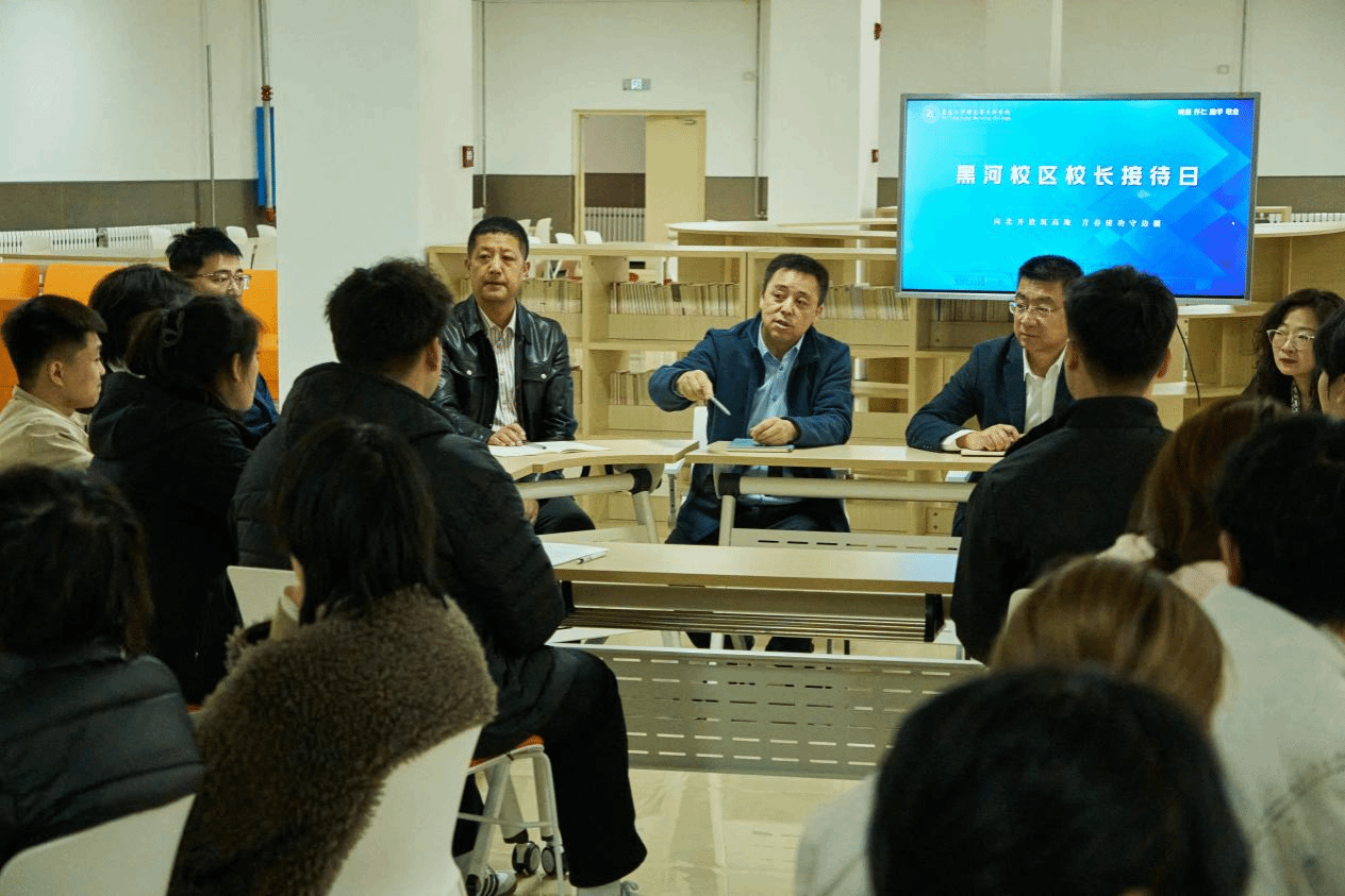为深入贯彻国家向北开放战略,厚植学生家国情怀,引导青年学子扎根边疆、奉献边疆,4月21日,“向北开放筑高地 青春建功守边疆”校长接待日活动在黑河校区“一站式”学生社区温情开展。副校长张荣兴、于沛君,学生工作部部长刘哲妍以及黑河校区全体学管人员与来自各专业的学生代表围坐一堂,共话青春使命,共绘边疆发展蓝图。