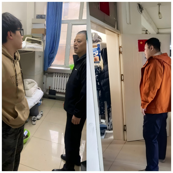 该三级联动值班机制采取分层负责、垂直管理的工作模式。各级值班负责人每日组织对各校区进行系统性巡查,深入学生宿舍开展走访调研。在走访过程中,副校长于沛君与学生进行深入交流,全面了解学生的假期安排、生活诉求及学业进展,并认真听取学生的意见建议。在巡查时,学生工作部负责人刘哲妍着重强调了宿舍安全管理规范,特别指出必须严格遵守用电安全制度,严禁使用违规电器,同时要做好个人财物保管工作。对于学生反映的实际困难,各级负责人现场办公予以协调解决,充分体现了学校以人为本的管理理念。