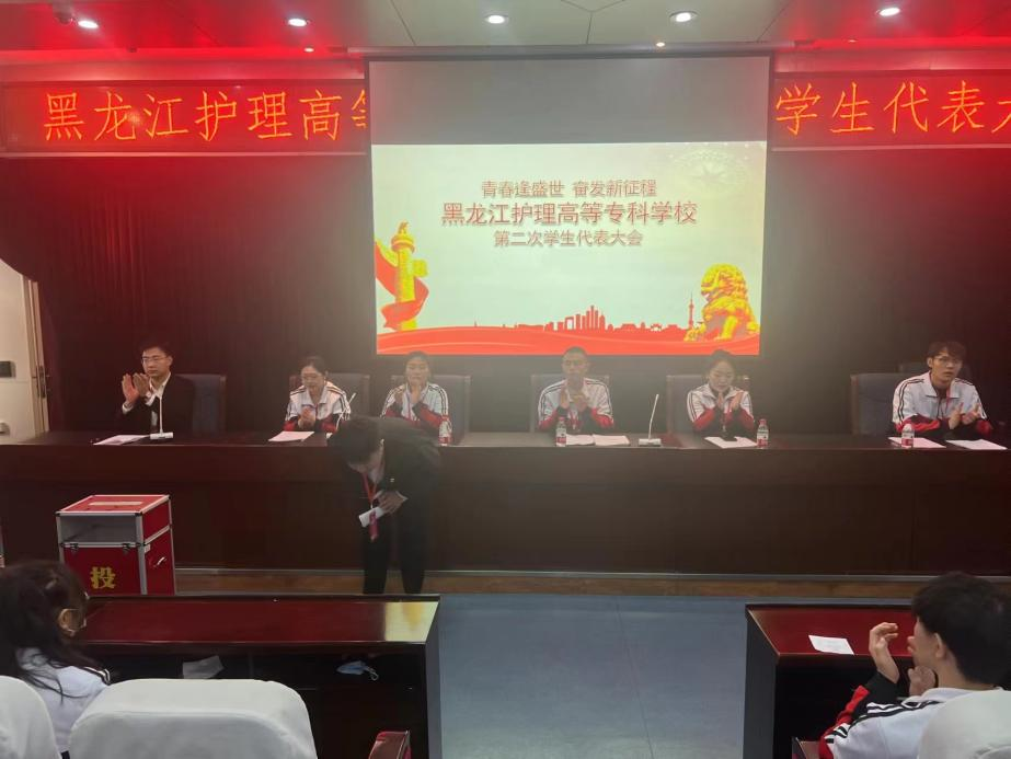 2023年12月8日,下午13点,黑龙江护理高等专科学校第二次学生代表大会在南岗校区实训楼六楼会议室顺利召开,阿城校区、松北校区设有分会场,参会代表共计120人。