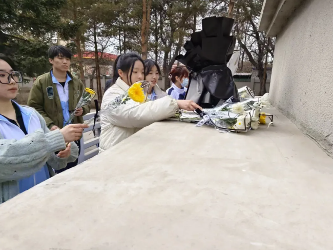 清明祭英烈,鲜花托哀思,同学们统一着装校服,手持鲜花,整齐列队,肃立默哀,表达了对革命先烈的崇敬和怀念之情。在献花仪式结束后,学生们在烈士陵园内展开清扫活动,大家手持清扫工具,认真清理陵园内的落叶和垃圾,用实际行动维护了烈士陵园的整洁,表达了对烈士的敬仰和怀念之情。