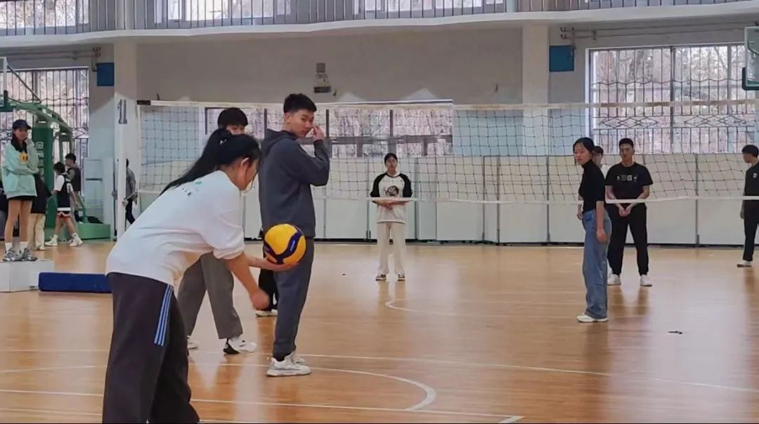 排球比赛同样精彩纷呈。队员们迅速移动,时而跳跃扣杀,时而巧妙传球,展现了排球运动的魅力。同学们也为队员们的精彩表现欢呼喝彩,现场气氛热闹非凡。